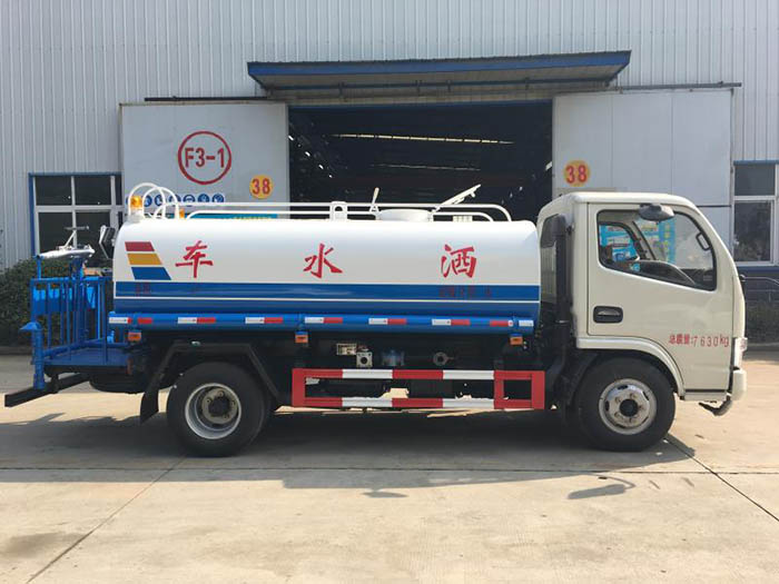 据悉,该车实际容积为5立方,罐体采用武钢优质碳钢制作,板材为4mm厚度,罐体内置防波隔板,提高了车辆的稳定性。程力公司生产的洒水车产品具有前冲、后洒、侧喷、花洒、自吸自排等多功能,可用于园林绿化、路面冲洗、工程用水运输等用途。