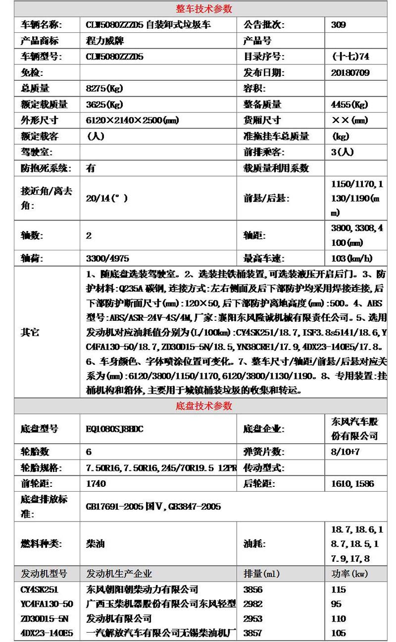 东风大多利卡 7方挂桶垃圾车 售后服务说明 | |