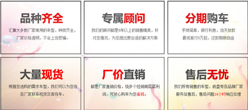 本厂常年储备各类现车,预付定金即可发车,车到付全款,无忧售后,全国送车!