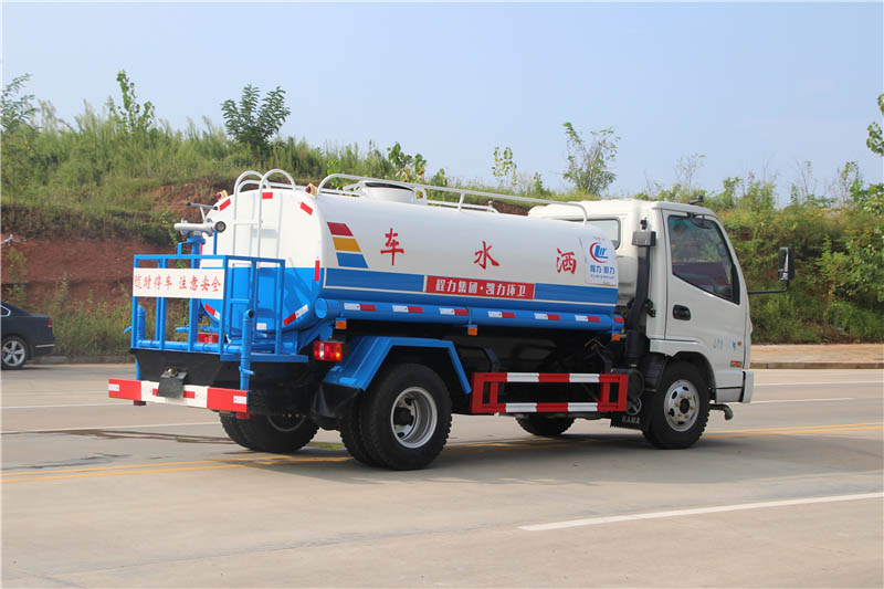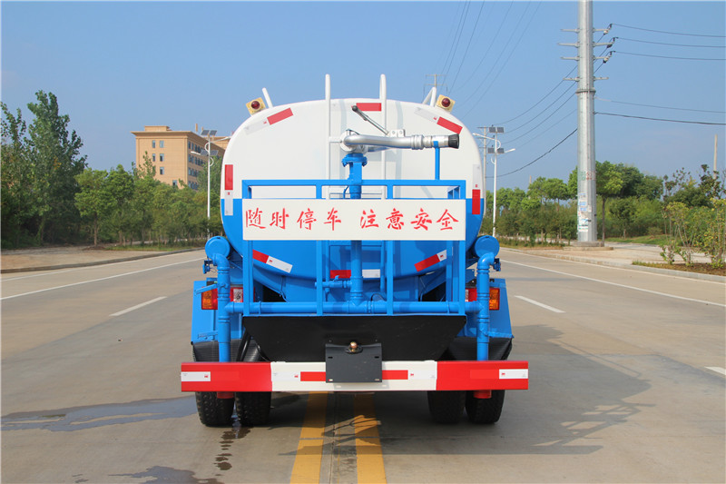 前喷后洒,前装有鸭形喷嘴或圆头冲嘴,后面装有圆柱开洒水喷嘴或莲蓬头喷嘴,后部有一工作平台,装配有高压水炮。后部还可装8个喷嘴(选装)喷水器一般用于冲洗街道